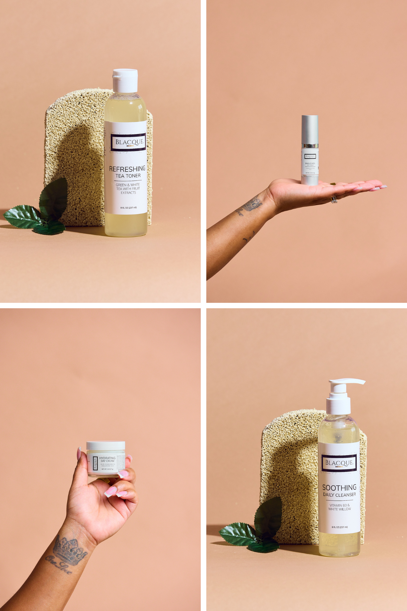 The wait is over—Blacque Skincare is finally here. Every formula was intentionally crafted with melanin-rich skin in mind, honoring its unique needs for hydration, balance, and radiance. From our soothing botanicals to barrier-supporting actives, every detail was chosen to protect, nourish, and celebrate the full spectrum of melanin skin—from light to deep. Your shade deserves skincare made for you—welcome to the future of beauty that puts melanin first.